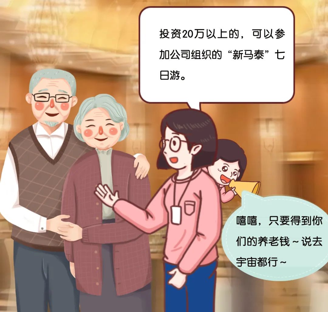 对于有投资意向的老年人以出国旅游、外地考察等为诱饵赢取信任。