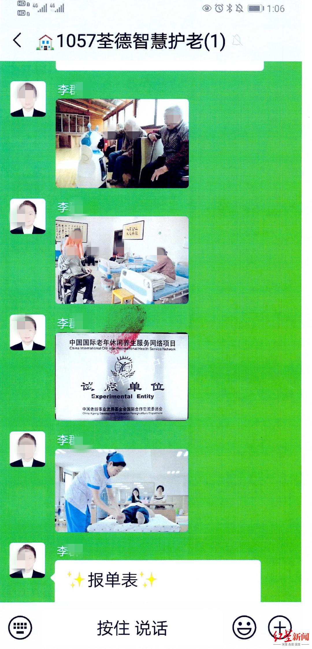 随后王某便将张女士拉入了一个养老投资微信群,群主每天发“荃德智慧护老”项目的相关资料,宣称该项目是国家支持建设的先行示范养老项目,投资该项目后每天会有2.5%的返现,并且项目完成以后投资人将自动成为该项目的会员优先免费享受养老服务等。