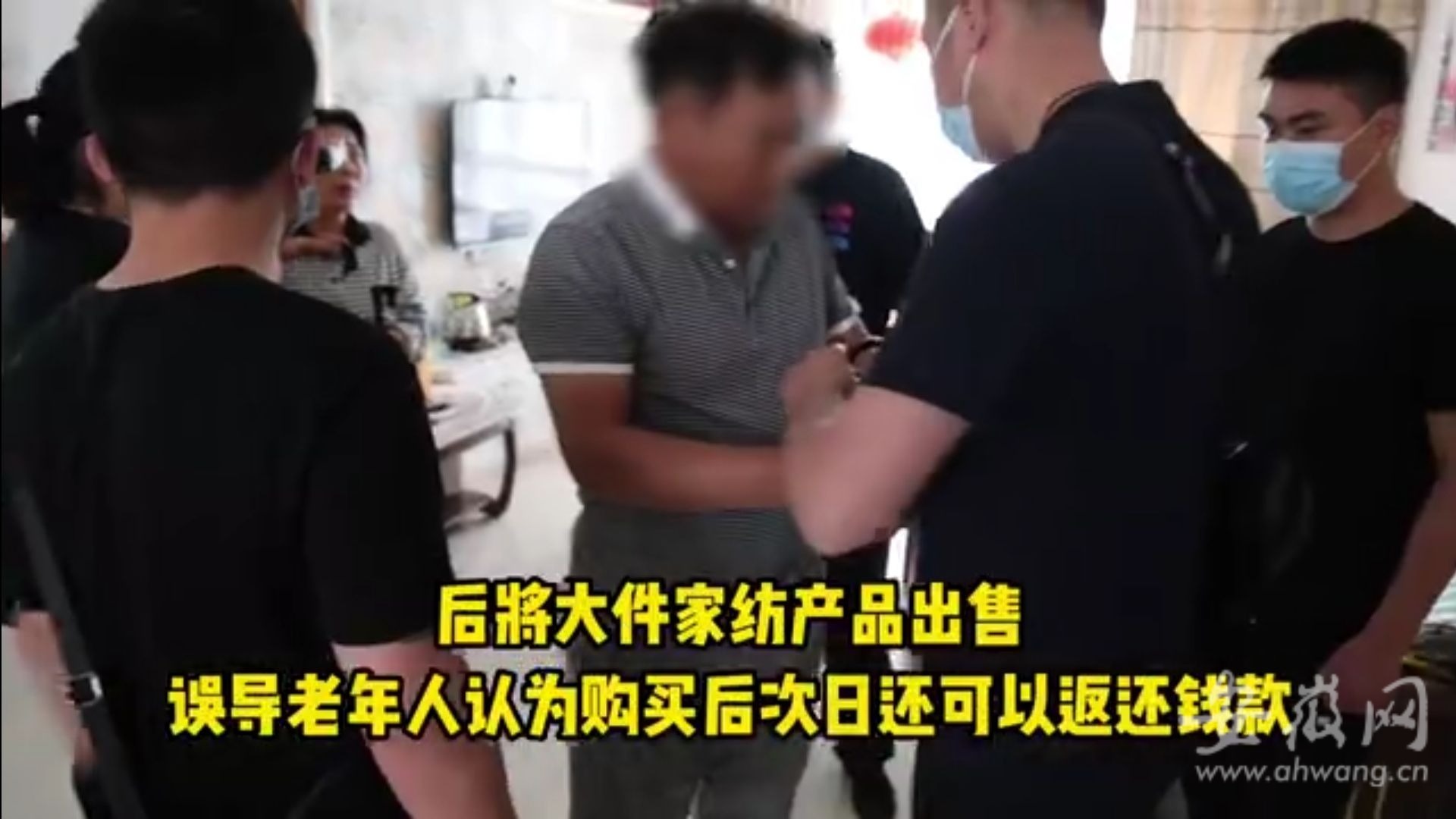 新安晚报 、安徽网、 大皖新闻记者6月4日下午从民警处了解到,在六安市霍邱县石店镇一家酒店内,郭某某等人以厂家推广家纺产品为由,以购买小件物品隔日返还,取得老年人信任,后将大件家纺产品出售,误导老年人以为购买后次日可以返还钱款。