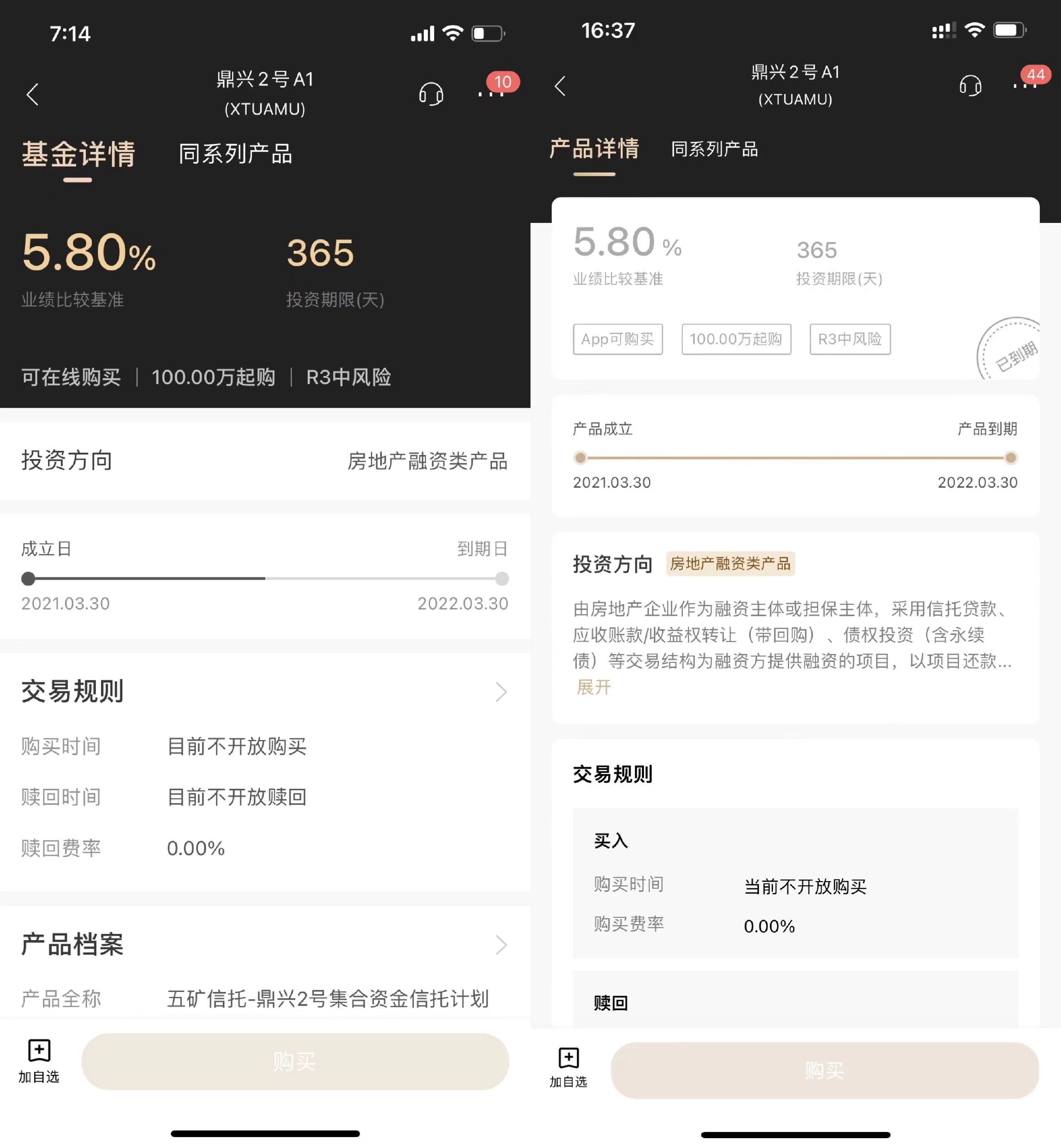 (受访者提供。左图为产品未到期前的界面,右图为今年5月份界面)