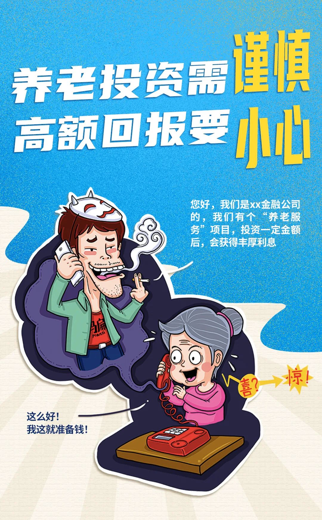 警方提醒广大市民:“社保”“养老保险”等一定要通过正规渠道购买,切勿相信个人或中介机构,如遭遇诈骗请立即报警。