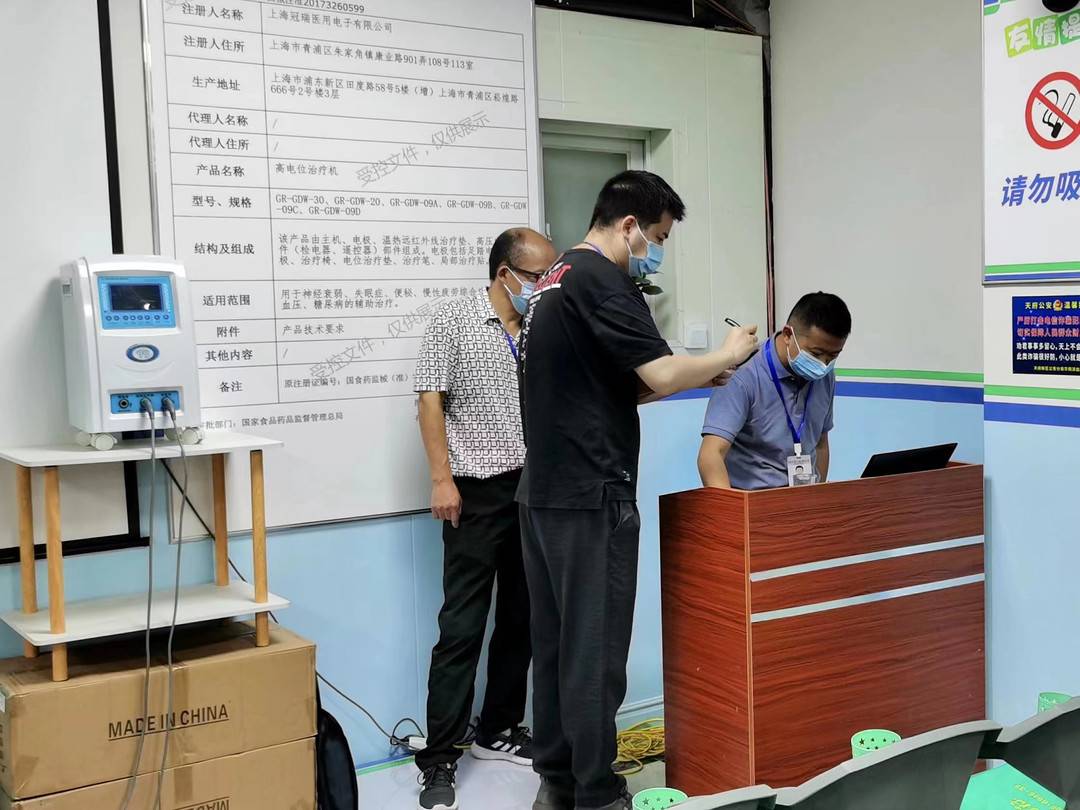 近日,四川天府新区市场监管局联合新区人民检察院到天府新区华阳街道华熙路对冠瑞高电位治疗机体验场所就涉嫌养老诈骗的问题线索开展现场检查。