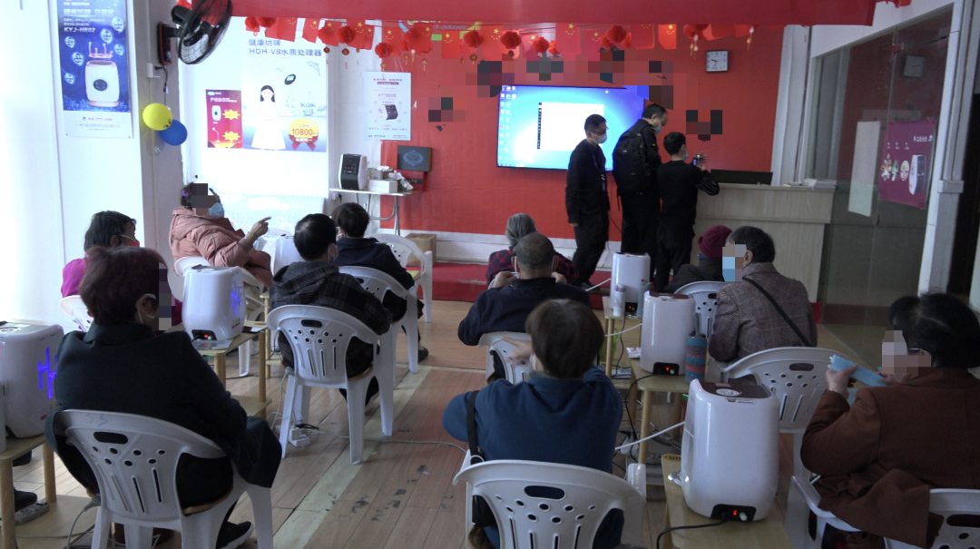 丽水市市场监管局根据线索迅速对该商家展开现场检查。调查发现,该商家通过赠送氢素片、牙膏、香皂等小礼品,吸引老年消费者到其经营场所内参加制氢机等产品的免费体验活动。期间该商家每日组织多场其所谓的“健康讲座”,通过截选、拼接视频的方式对氢的功效断章取义,并捏造出一批癌症、重症患者吸氢后病情显著改善的案例。大肆渲染氢气和富氢水的“神奇功效”,以“吸氢气能包治百病”为噱头,精准把握前来体验服务的老年人本就身患疾病、害怕患病的心理,使他们对制氢机等设备产生浓厚兴趣,误导、欺骗老年消费者。