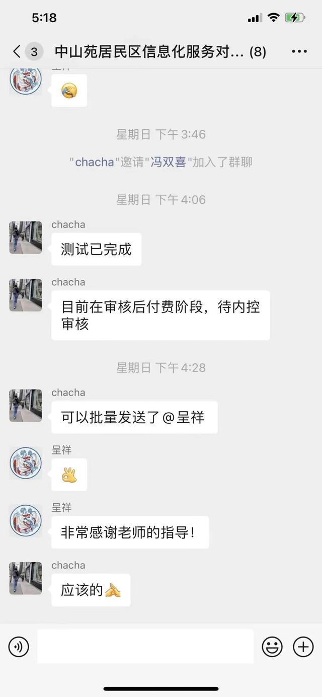 据了解,中山苑居民区共有1850户居民,常住人口达5300多人。由于是动迁安置小区,居民年龄结构存在老龄化现象,不少上了年纪的居民不会使用智能手机,导致居委会与居民间的信息传递很难通过微信群完成。然而,社区团购、物资分发任务日趋加重,面对几百份的订单,居委会光是通知居民领物资就要花上好几个小时。近期,随着“两新”企业党组织与居民区结对工作的推进,上海创蓝云智信息科技股份有限公司党支部主动提出为社区提供免费短信技术服务的设想。