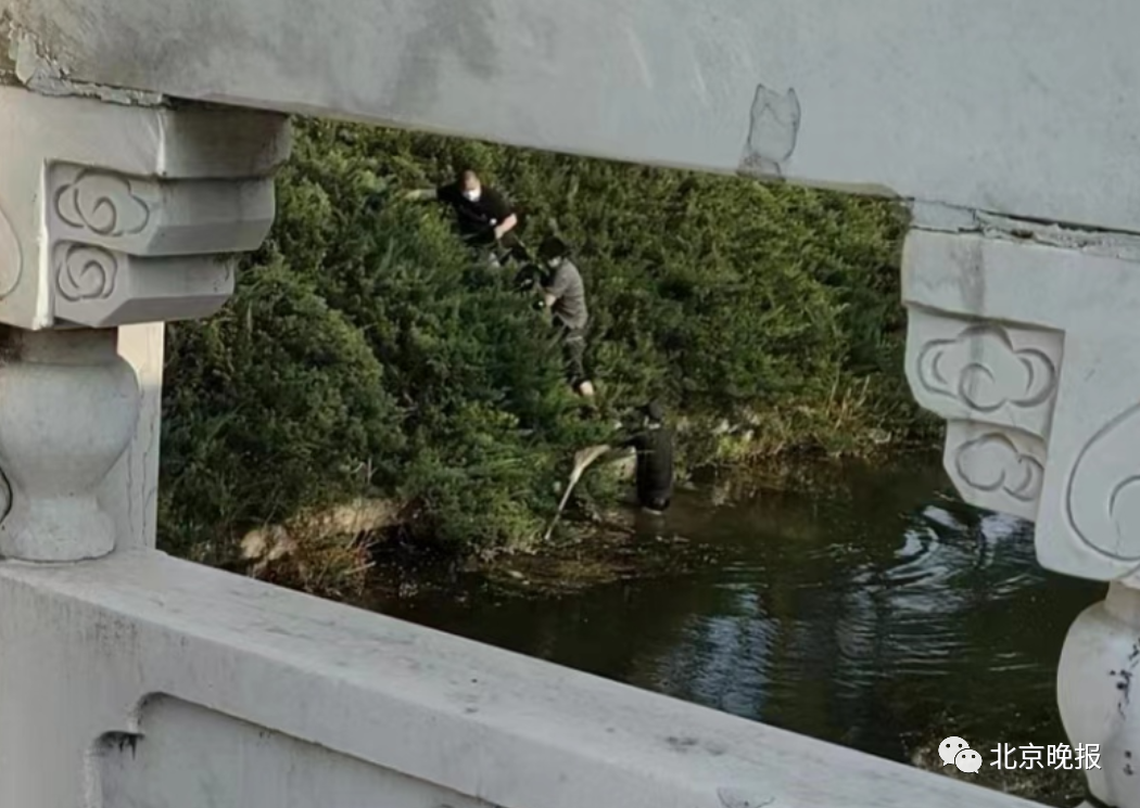 在北京朝阳区兴隆家园西侧河边的小桥上