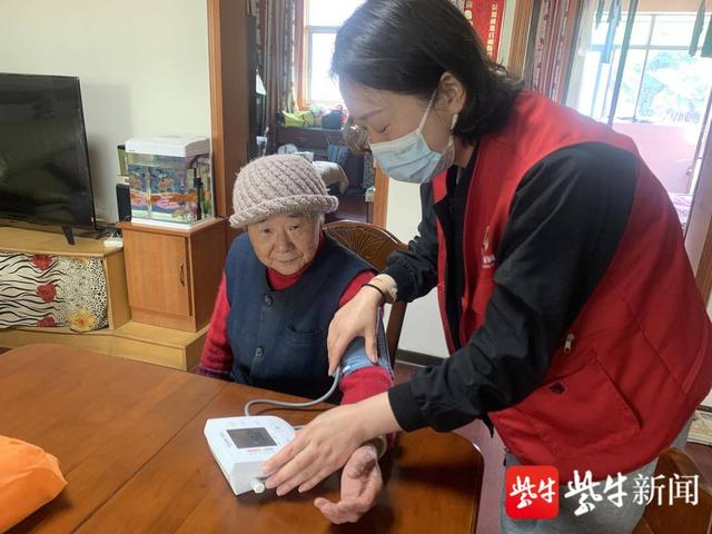 江北新区泰山街道“银杏树养老服务中心”负责人徐冕上门陪伴独居老人陈老太太
