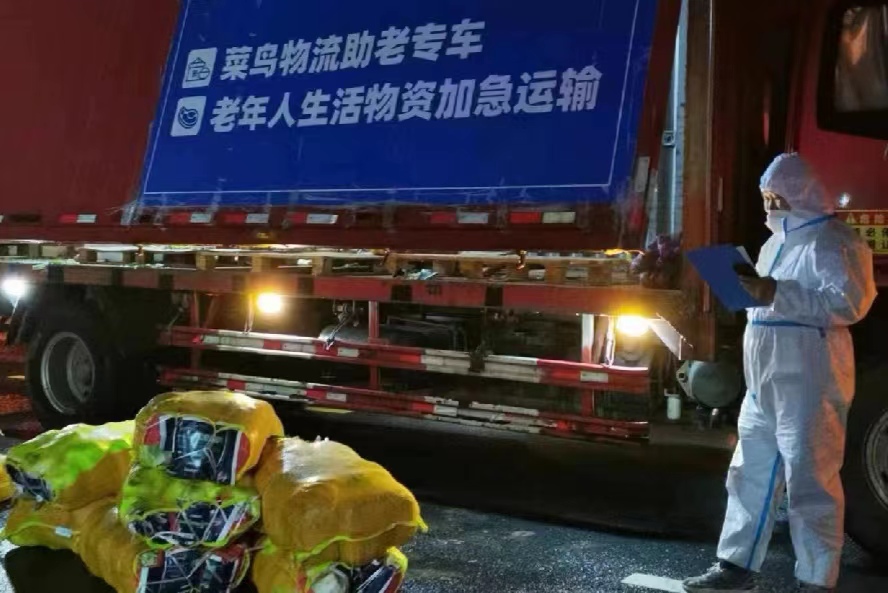 在物资调运过程中,菜鸟不仅提供了上海市内的仓储设施,也把自营车队的精锐力量抽掉了一部分用来运输助老物资。这些司机上午还在仓库里运输电商快递包裹,接到紧急任务时立即开赴浙江江山等地,将数十吨大米和食用油运到上海,送入“助老专仓”。除了助老专车司机团队、助老专仓调度及分拨团队,菜鸟还组建应急物流团队、专业的冷链物流团队做支撑,解决专业紧急的应急快递需求。