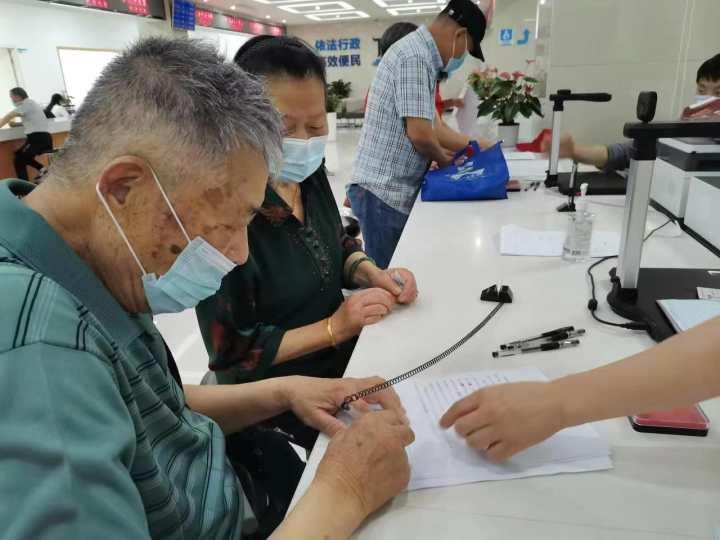 像谢大伯一样的老人不少,他们在工作人员的指引下,拍照、取号、填表、补证。