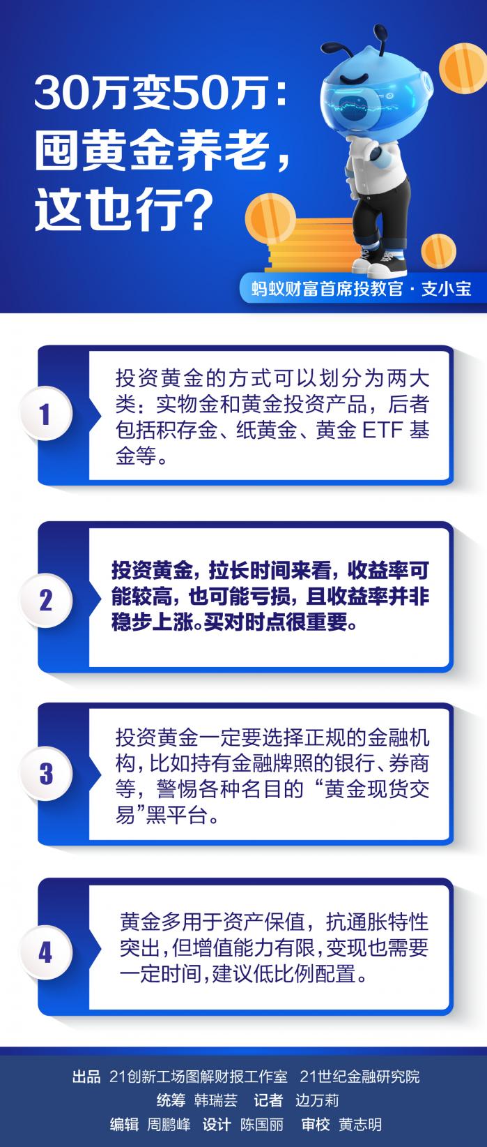 近期,由21世纪经济报道联合蚂蚁投教基地联合推出的《养在未老时》投教专题开始陆陆续续介绍一些另类的养老投资方式。上一期我们说完了“靠股息养老”,今天我们再聊一聊可以不可以靠囤黄金赚养老金。