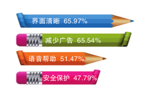 六成多受访老人提及希望智能设备能提供更清晰的界面和尽量减少广告。老年人视力减退,日常用眼过度也会带来疲劳感,因此界面的清晰程度、文字能否一眼看清,成为不少老人关心的问题;而广告对老年人使用智能设备的整体感受有很大的影响,一些老年人表示有些页面广告无法关闭,影响使用;受访老人也表示希望智能设备能够提供足够“聪明”的语音帮助,使得老年人可以便捷地使用智能设备,并要求电信运营商和生产厂家增强手机使用的安全性。