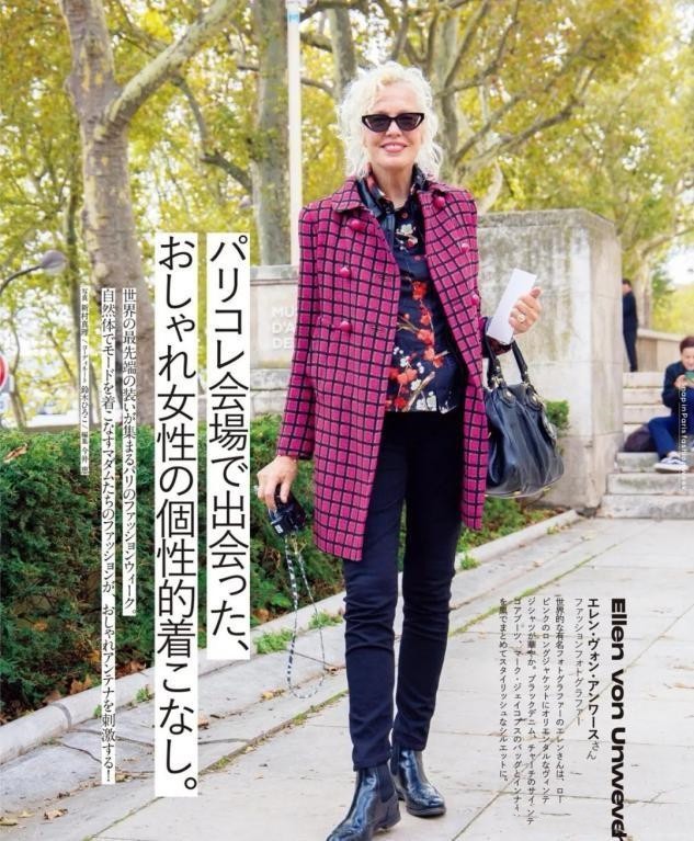 这种彩色的格纹上衣,在国外大龄女性的穿搭中会比较常见,在国内大龄女性身上,上身率不是非常高。因为这种彩色的西装上衣穿起来很抢眼,搭配上格纹的元素设计方式,显得上半身的色彩和元素设计太过于张扬,过分的抢眼往往会带来土气感的搭配效果。