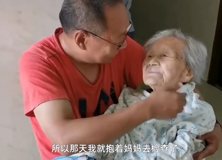 儿子抱101岁母亲看病,心疼到掉眼泪