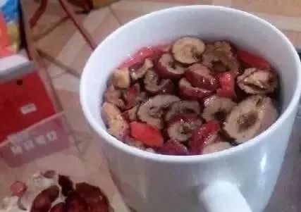 泡的时候小红枣要拿手撕碎,把三样放一起,开水沏一下,上午一杯,下午一杯,随喝随兑水。