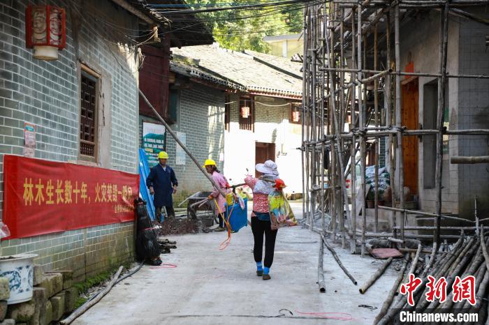 如何使村民们“搬得出、住得下、能致富、可持续”?六段村的生态资源优势和特色瑶族文化发挥了重要作用。记者看到,六段古村有两棵高大的千年红豆杉,杉树旁围栏上系满了游客许愿的红带子。顺山路而下,还可听到清泉叮咚作响。黄通旺介绍,六段村森林覆盖率超过90%,有近5000亩秀美连片的高山茶园,有全县最集中的国家一级保护植物红豆杉群落和千年红豆杉古树。