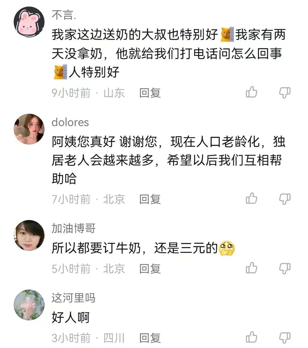 拱墅区潮鸣街道锦园社区所巷小区有位住在5楼的老吴大伯,80多岁,独居老人。之前,吴大伯体谅汪青每天跑上跑下的太辛苦,就让她三天送一次好了,“酸奶可以多放两天,我老人家慢慢下来拿,也好买买菜,活动活动。”