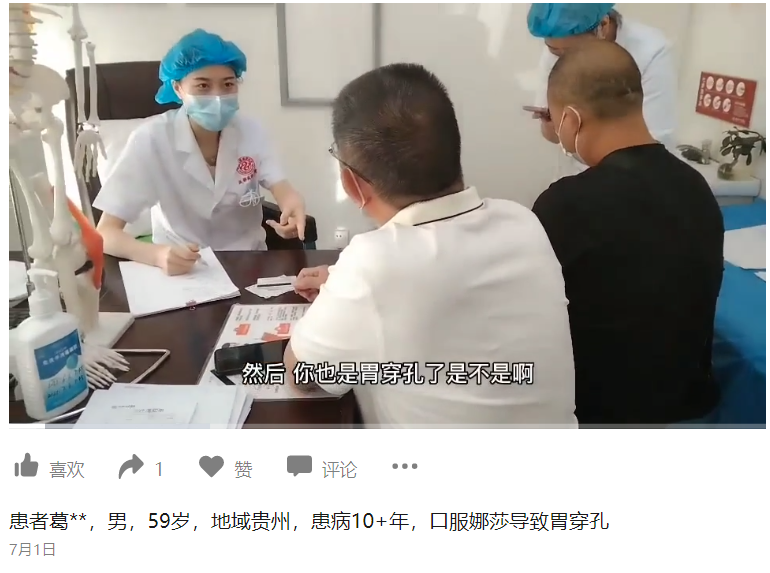 近日,贵州一患者,口服“娜莎”后导致胃穿孔。