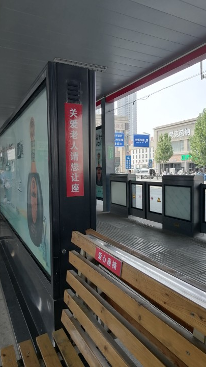 最近,郑州快速公交在途径车辆较多、客流量较大、老年乘客较多的农业路沿线15座中央岛式BRT站台,推出了适老化服务站台。快速公交公司站务中心农业路线路班组长黄亚楠:“全部配置‘26℃红色驿站’便民袋,放置有老花镜、一次性雨衣、急救药品等物品。还配置了拉杆车,让老年人购物更省心、省力。同时还在中州大道、花园路两座站台配置了轮椅。站台还设置了‘爱心座椅’,通过多种途径提升适老化交通出行。”