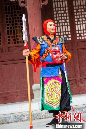 “演什么角色就要像什么。”周昌智说,每个角色的面具、服装、兵器道具缺一不可,其中,“面具代表人物,每一个面具都各有特色。”