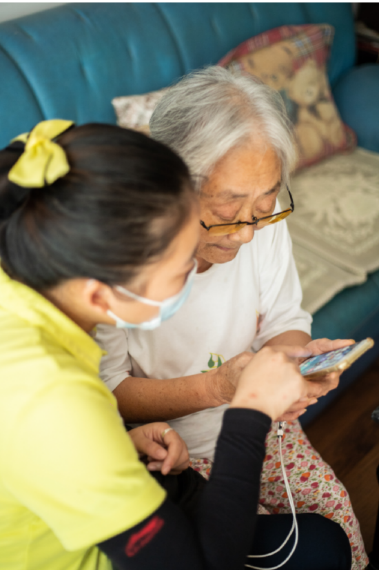 许多空巢老人的孤独感来自与子女的交流鸿沟,为让老人跟上潮流,同时增加生活便利性,万科物业组织管家或志愿者一对一教学,让老人学会使用微信、支付宝、医院挂号、外卖网购、抖音等手机软件,教学的同时,还能让老人获得暖心的陪伴感。