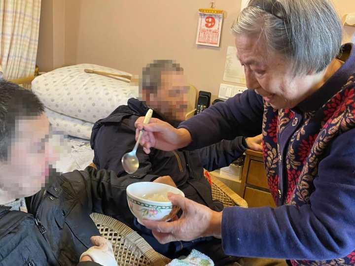 两个儿子的一日三餐,都是沈奶奶这样一勺一勺喂进去的,这一喂就是54年。