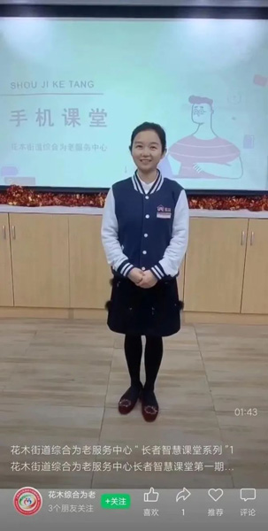 “考虑到老人使用智能设备经常遇到这样那样的不便,我们就设计了这个系列课程,围绕健康码、移动支付、一键叫车、手机导航、流量使用等场景内容开展演示教学。”花木街道综合为老服务中心主任吕淑娟告诉记者,“我们觉得当下十分火的短视频是一个非常不错的切入载体,既能把实用的信息分享给老年朋友,又能给他们解闷,一举多得。”