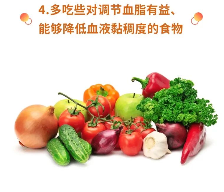 可以选择洋葱、海带、黑木耳、芹菜、萝卜、胡萝卜、菠菜、山楂、橘子、柚子、柠檬、深海鱼油等。还要多吃含碘丰富的食物,如海带、紫菜、虾米等。碘可减少胆固醇在动脉壁沉积,防止动脉硬化的发生。由于蔬菜和水果中含有较多的维生素C和钾、镁等矿物质及膳食纤维,这些都对改善血管弹性有帮助,所以每天保证摄入1斤蔬菜、半斤低糖水果非常必要。
