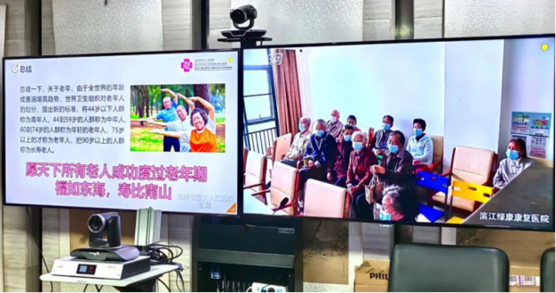 滨江绿康阳光家园为居家养老社区,社区内部的滨江绿康康复医院与杭州市第三人民医院结成紧密医养联合体。对视联网的创新运用为养老社区和公立医院之间开辟了一条更加灵活、便捷的通信渠道,使养老社区与公立医院的联系更加紧密。接入视联网的医疗机构和社区同时接入超高清远程医学卫生专网,随时随地可开展线上点对点、点对多点的实时双向远程连线、会诊,也可通过直播等形式开展线上培训、教学。