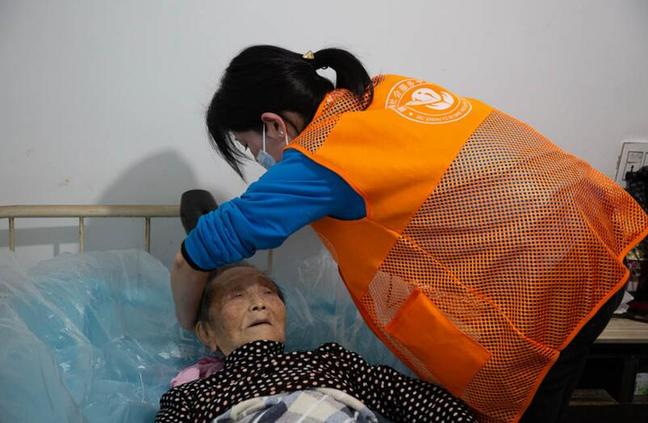 家住和孚镇荻港村的老人章阿林今年93岁,瘫痪在床多年,不能正常活动,由于缺乏专业操作人员和沐浴条件,已经多年没有畅快地洗过澡了。为解决失能老人洗澡这一民生痛点,和孚镇通过“政府引导、社会参与、市场运作”的思路,推出了专业团队携浴缸上门助浴的服务。在村级日间照料中心工作人员的帮助下,章阿林老人接受了上门助浴服务,工作人员不仅帮她洗头换衣,还测量血压、理发,这位老人头一次躺在浴缸里洗了个舒服的热水澡。