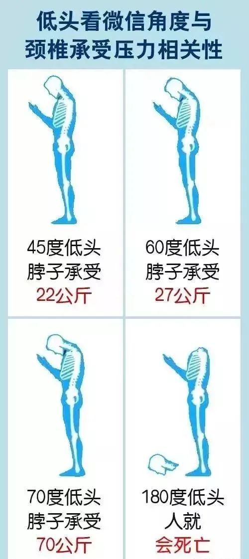 但是我们不知道的是,长期低头让颈椎上长期挂着这样一个“二十多斤的虚拟面袋子”让脖子离颈椎病越来越近。