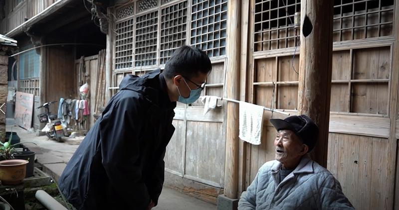 工作人员在老人家中了解情况。文成县委宣传部供图