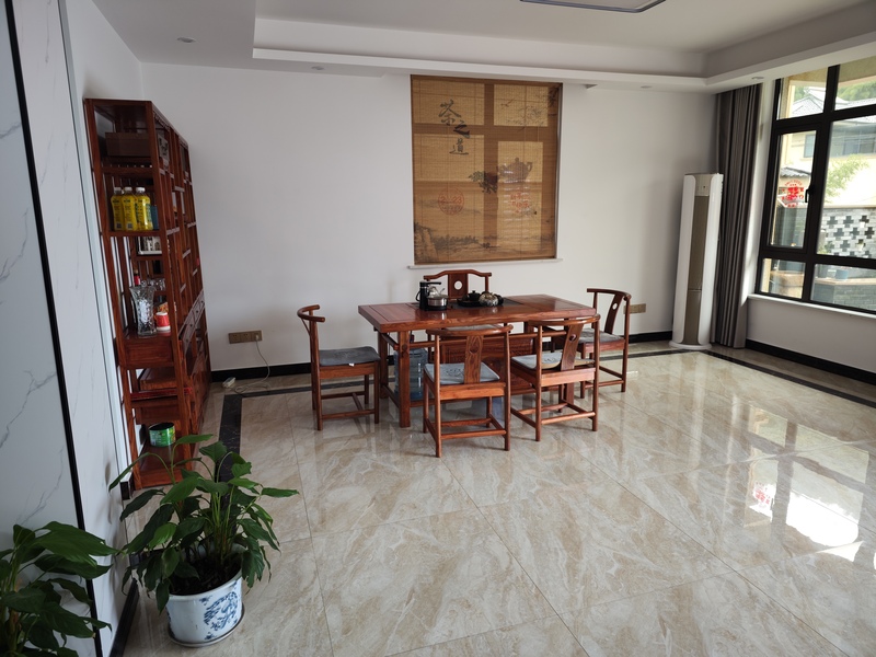 汤丽芳53岁,曾在大学当过宿管,出版过多部中长篇小说。用汤丽芳自己的话说,她爱交朋友,不愿较真,行动力强,对想做的事会想尽办法去做好。前几年,过完50岁生日,汤丽芳就开始操心起自己和老伴的养老问题,她回百丈村老家盖了一栋三层小别墅,门口就是远山淡影和竹海山涧,她和老伴笃定以后要在这里养老。当下,汤丽芳的老伴在杭州临平区经营店铺,平日里的大多数时间,偌大的别墅只有汤丽芳一个人。平时,她自己看书写作,有时接待来访的朋友。一楼的客厅里,放置了两张茶桌,一张放了成套的茶具,另一张用来办公,桌上还摊着她看了一半的村上春树的小说。靠墙的书架上,放置了不少书籍,从经典小说到科幻作品都有。