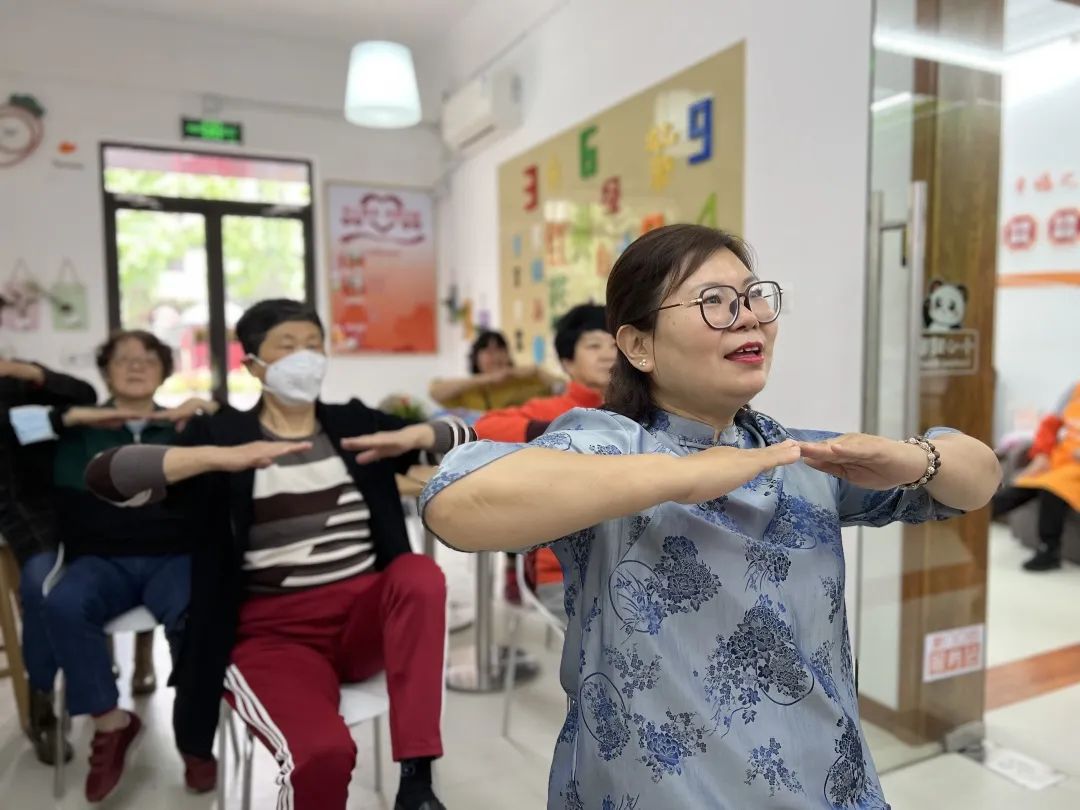 殷行街道居民娄美芳,是一名轻度认知症患者,就住在“家门口养老服务站”的附近。最近,她时不时和姐妹们相约而来,度过欢乐一天。她时常说,这家“时光驿站”就像一个小学校,老人们彼此就像同学。“关键是要见面。大家聚在一起聊一聊,手指操做一做,歌唱一唱,很开心。我们一到这儿来就感觉自己年轻很多,身体也健康起来了。平时在家里一个人待着没人说话,到这里话就多了。”