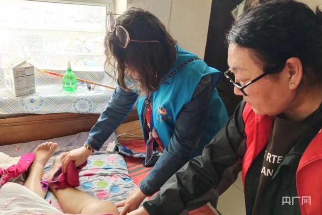 志愿者正在为老人擦拭身体 (央广网发 包尔海乡人民政府供图)