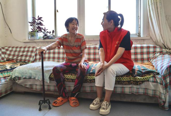 东光县民政局工作人员询问老人生活中的具体需求。 陈英华摄