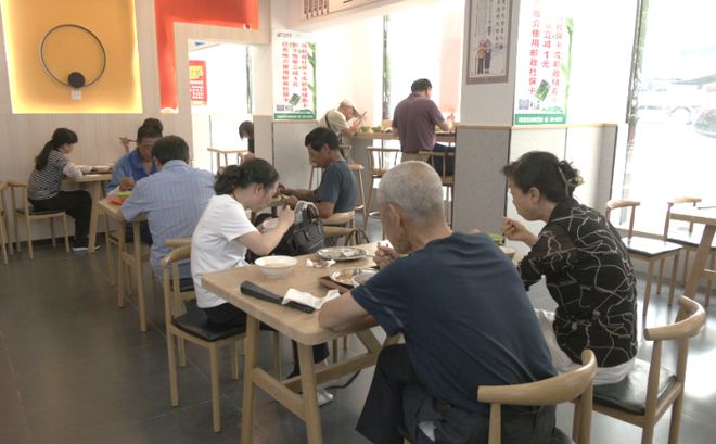 今年6月,宝山区顾村镇菊泉故里老年助餐点,新增堂食服务,吸引了不少附近的居民前来就餐,今