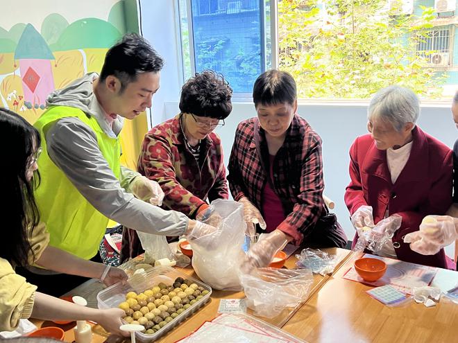 佳节又至,重庆市渝北区双龙湖街道老年餐中央厨房里充满了欢声笑语。老人们在工作人员的带领下一起制作手工月饼、品尝中央厨房提供的免费餐食,其乐融融。