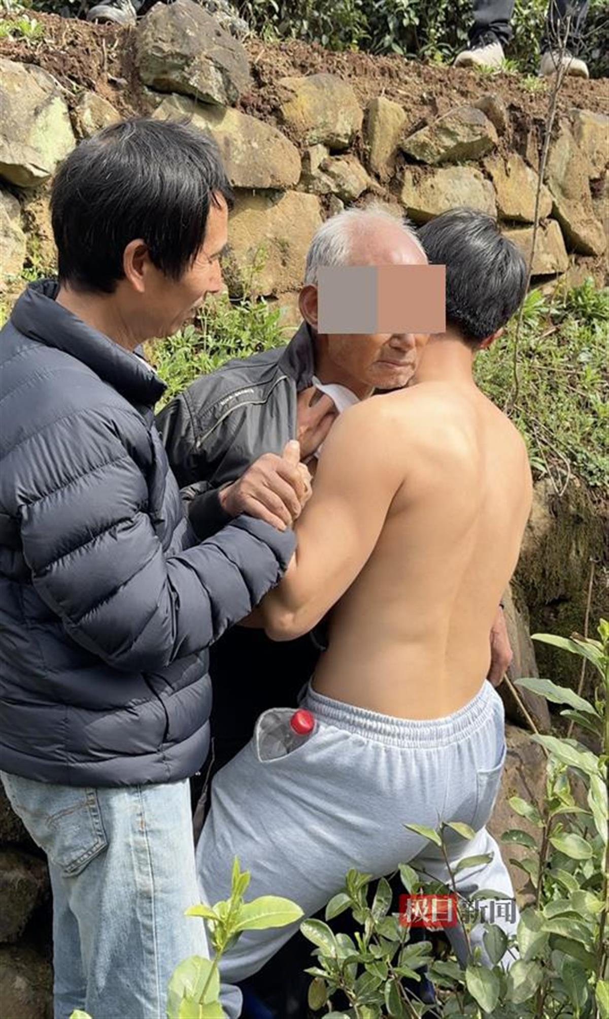 杨先生介绍,爷爷从2020年开始患有阿尔茨海默病,并且症状逐渐加重,目前几乎都认不得家人了。爷爷和奶奶平时住在一起,奶奶将他看得紧紧的,但难免有忙着做家务等时候,无法一直盯着爷爷。当天下午爷爷走失后,杨先生的父母和村民们立即在村里找人,在县城工作的杨先生也赶了回来。“因为监控显示爷爷最后朝山上去了,大家在山上搜了一夜,但就是没找到。”杨先生说,第二天下午,听说有人在半山腰的茶园发现爷爷,他就赶了过去。杨先生将外套脱下给爷爷裹着,但爷爷还是抖得厉害,嘴里还喊冷。于是,他便将衣服全脱掉,用身体的热量给爷爷取暖。“当时在等着担架上来,除了抱着爷爷,也没其他办法,其实也就几分钟。”杨先生说,自己抱着爷爷后,问他有没有好一些,爷爷回复说暖和一点了。