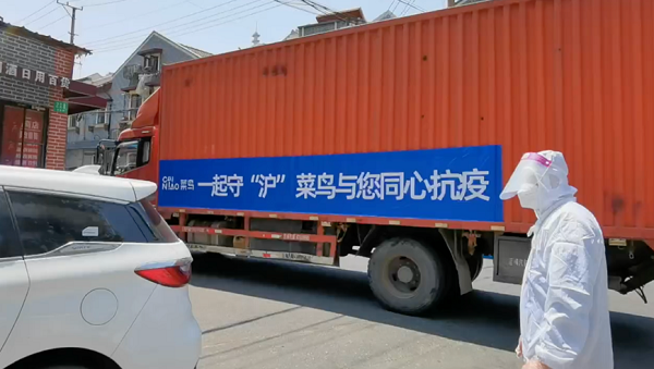 4月8日,2辆长7.6米的菜鸟货车穿梭在上海街道,配合当地民政部门,紧急将3000多斤蔬菜运抵虹口区5家养老院和闵行高华小区200多位独居老人家中。