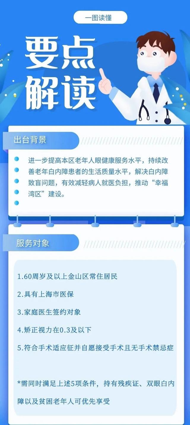 为持续改善老年白内障患者的生活质量水平,有效减轻患者就医负担,区卫健委重新修订完善了《金山区老年人白内障服务项目实施方案(2022版)》惠民政策,实施时间为5年,让更多老年人享受减免政策。
